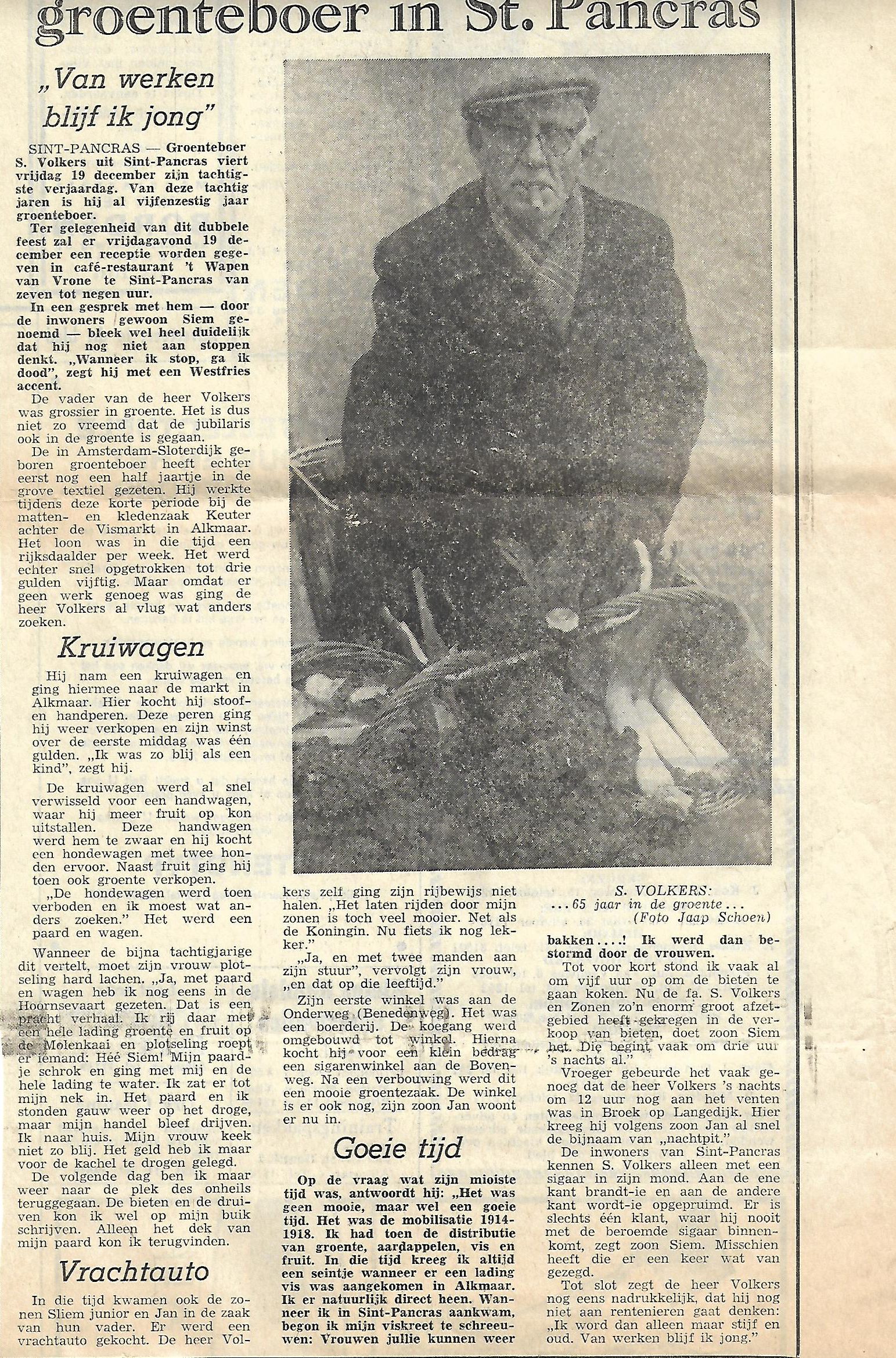 Over ons Al meer dan 115 jaar een begrip De groente en fruit winkel van de familie Volkers in Sint Pancras bestaat al van generatie op generatie. Vroeger werd er ook langs de deuren gevent met paard en wagen en later met een open vrachtwagen. Jan Volkers